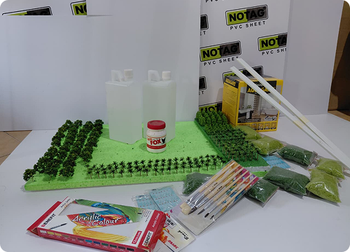 Selain itu, elemen pendukung lansekap juga dipersiapkan. Kami merancang dan membuat pohon, rumput, jalan, kolam, dan elemen alam lainnya yang akan menghidupkan maket dan membuatnya terasa lebih nyata.