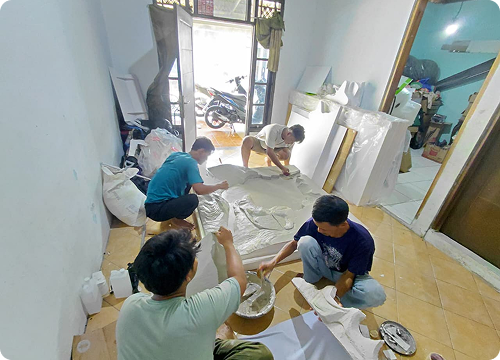 Pada tahap ini, alat-alat canggih kami seperti mesin laser cutting dan 3D printer mulai bekerja untuk memotong setiap komponen dengan akurasi maksimal. Kami juga menggunakan berbagai alat potong manual untuk detail yang tidak bisa dijangkau oleh mesin, menunjukkan perpaduan antara teknologi modern dan keahlian tangan.
