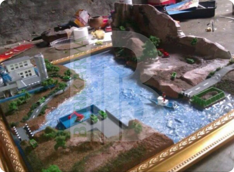 Bahan Massa Diorama : Ressin, Styrofoam, Mill , Sintetis Static Grass, Kain Flannel, Pasir Moza, Pasir Menir, Kawat, Rubber.